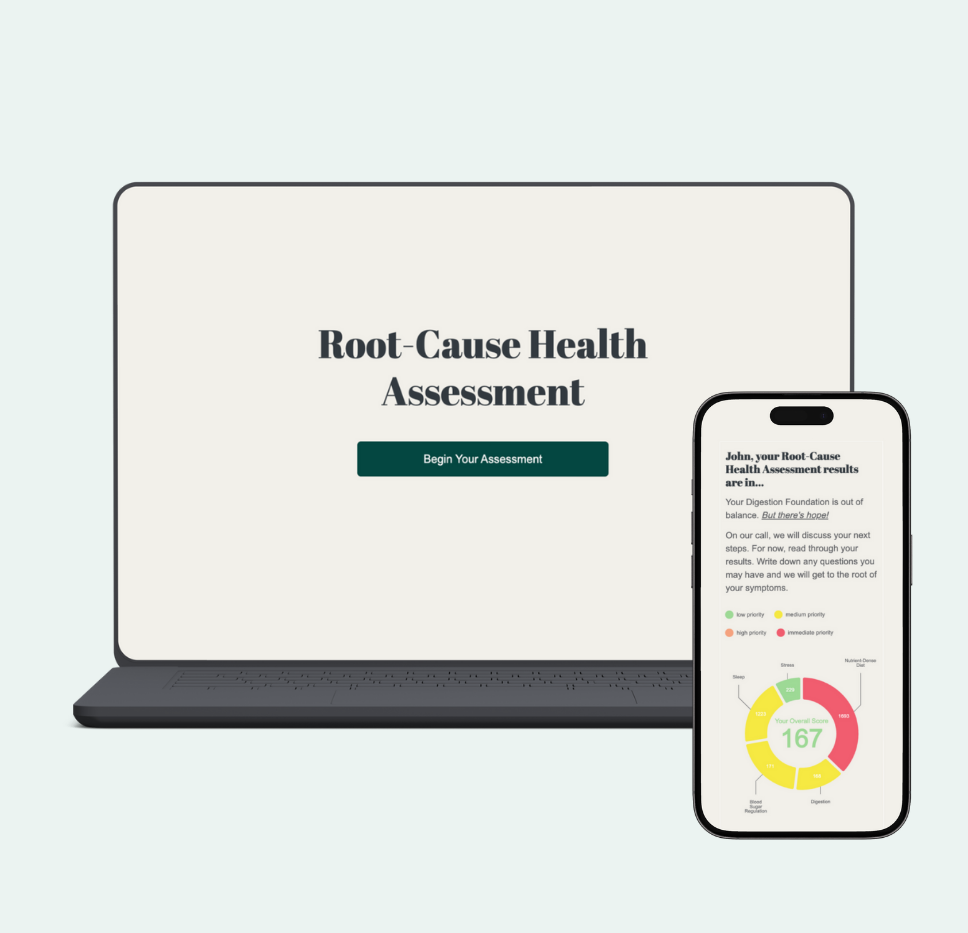Complete our detailed online Root-Cause Health Assessment — it covers your symptoms, lifestyle, nutrition, movement, stress, sleep and more.